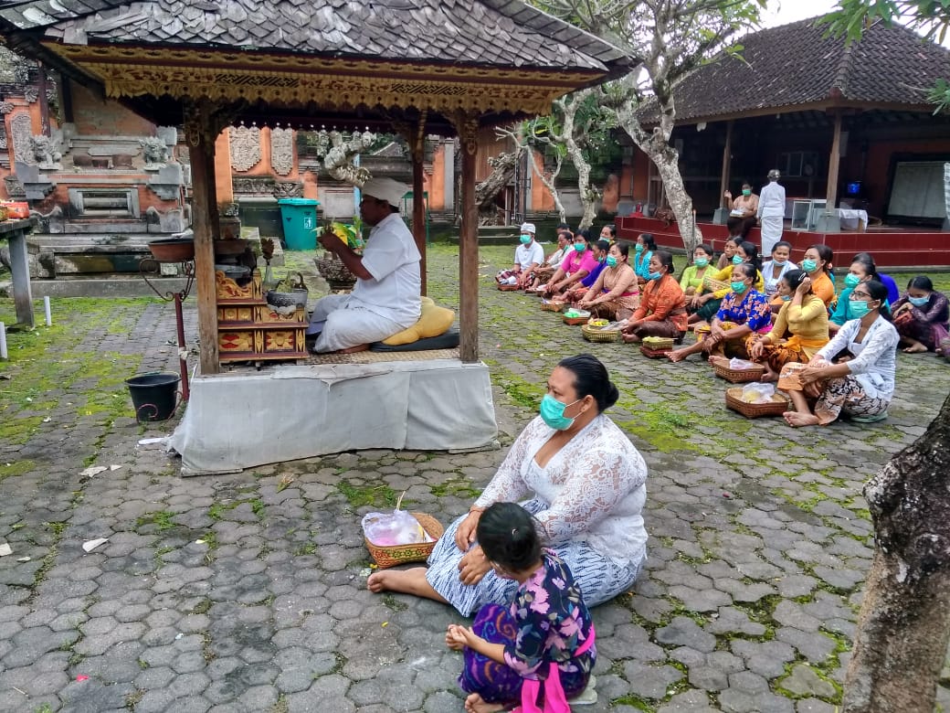 Krama Desa Adat Guliang Kangin melaksanakan kegiatan Nunas Ica di Pura Dalem Kahyangan Tiga dan Pura Dalem Tengaling dalam rangkaian Penanggulangan Niskala Gering Agung Covid-19 di wilayah Desa Adat Guliang Kangin pada Kamis (14/01/2021).