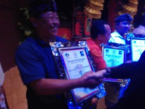 Setelah melewati seluruh tahapan dalam Penghargaan Desa Wisata Award, mulai dari pengumpulan berkas administrasi, mengisi quisioner indikator sampai pada kunjungan lapangan, akhirnya pada hari Jumat (26/05/2017) penghargaan ini diserahkan di Taman Nusa Gianyar.