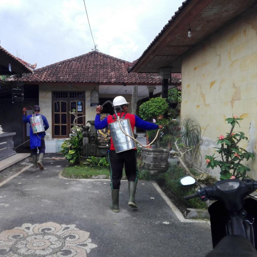Penyemprotan langsung dipimpin Bandesa Adat Guliang Kangin, Ngakan Putu Suarsana, SH. Bersama relawan dari Yowana Eka Budhi Dharma dan masyarakat melakukan penyemprotan mulai dari fasilitas umum, balai banjar, wantilan, pura sampai ke rumah-rumah masyarakat.