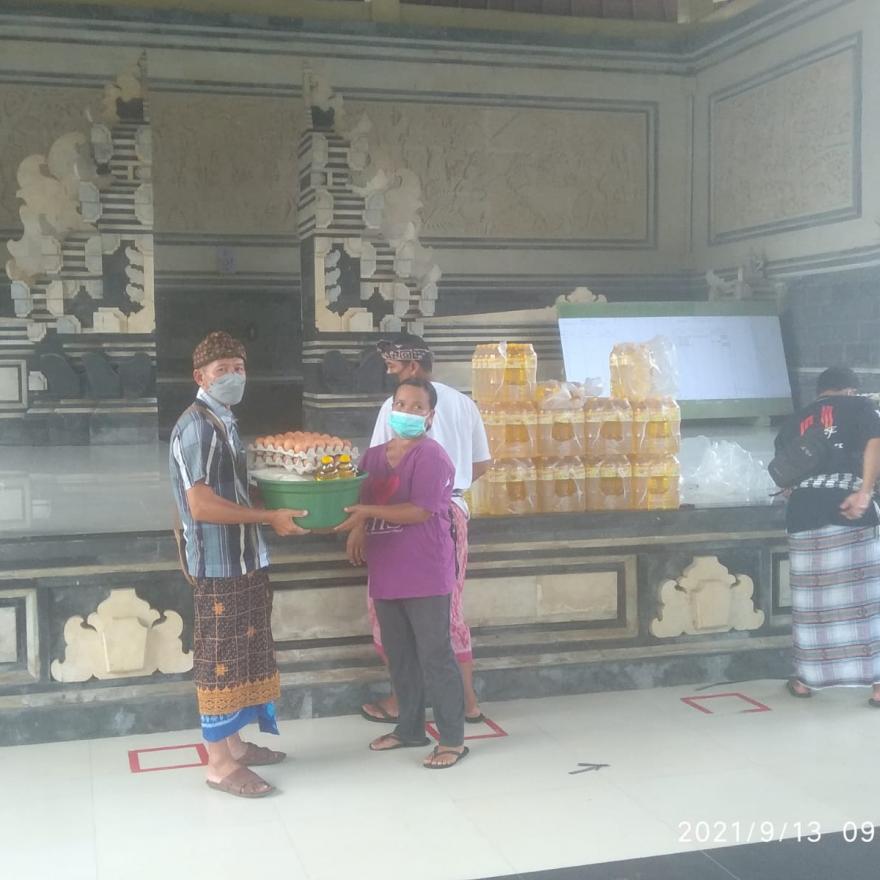 Satgas Gotong-royong Desa Adat Guliang Kangin memberikan Bantuan Pangan Non Tunai kepada masyarakat Banjar Adat Guliang Kangin, Desa Adat Guliang Kangin yang terdampak Pandemi Covid-19 pada Senin (13/09/2021) di Balai Desa Adat Guliang Kangin.